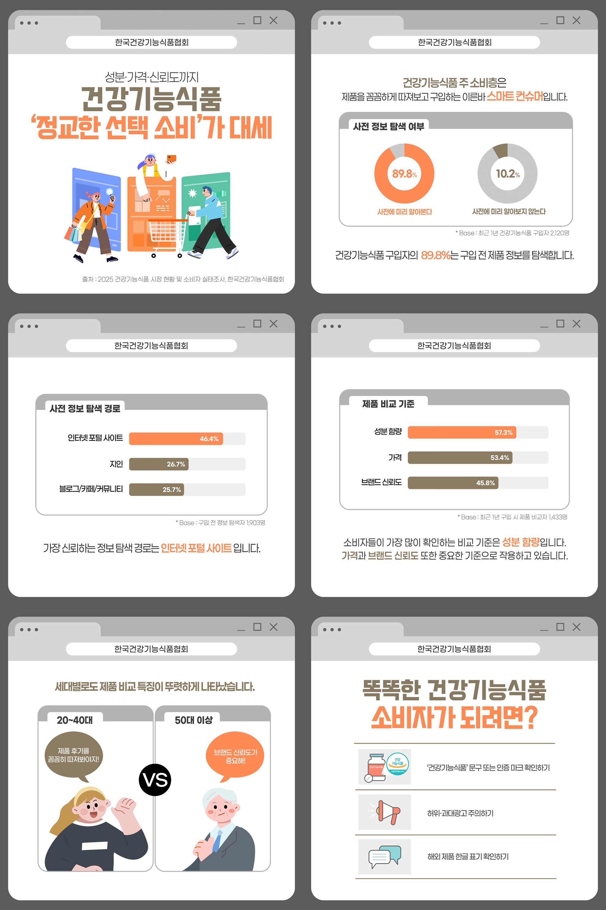 한국건강기능식품협회, 소비자 실태조사 통한 건강기능식품 구매 행태 분석 - 건강기능식품 소비자, '스마트 컨슈머'로 진화…정보 탐색·비교 후 구매가 일상화 - 구매 전 정보 탐색·성분 함량 중시…합리적 소비 행태 뚜렷