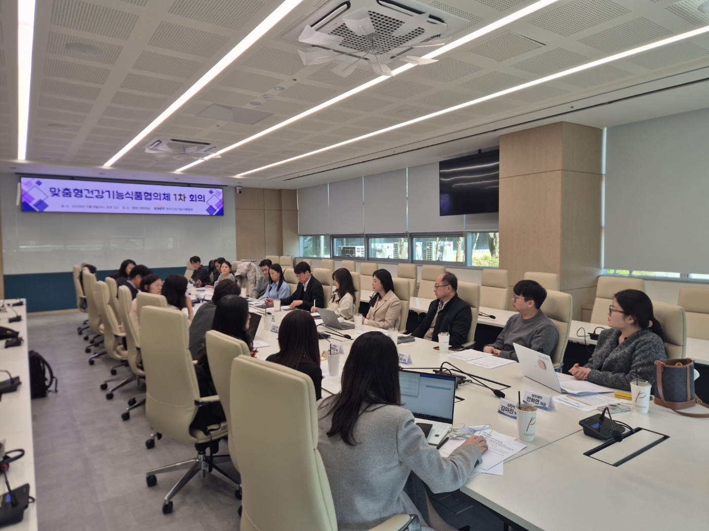 ○ 일시 : 2026년 4월 8일(수), 오후 3시 ○ 장소 : 협회 대회의실 ○ 참석자 : 식약처 건강기능식품정책과 김양수 사무관, 권우정 주무관, 협의체 위원, 협회 등 ○ 내용 : 협회는 맞춤형 건강기능식품 제도 및 홍보를 활성화하기 위하여 “맞춤형건강기능식품협의체”를 구성하였으며 지난 8일, 협의체 1차 회의를 개최하였다. 이번 회의에서는 식약처의 맞춤형 건강기능식품에 대한 관리 방향을 공유하고 협의체 위원장 선출 및 운영방안을 논의하였다.